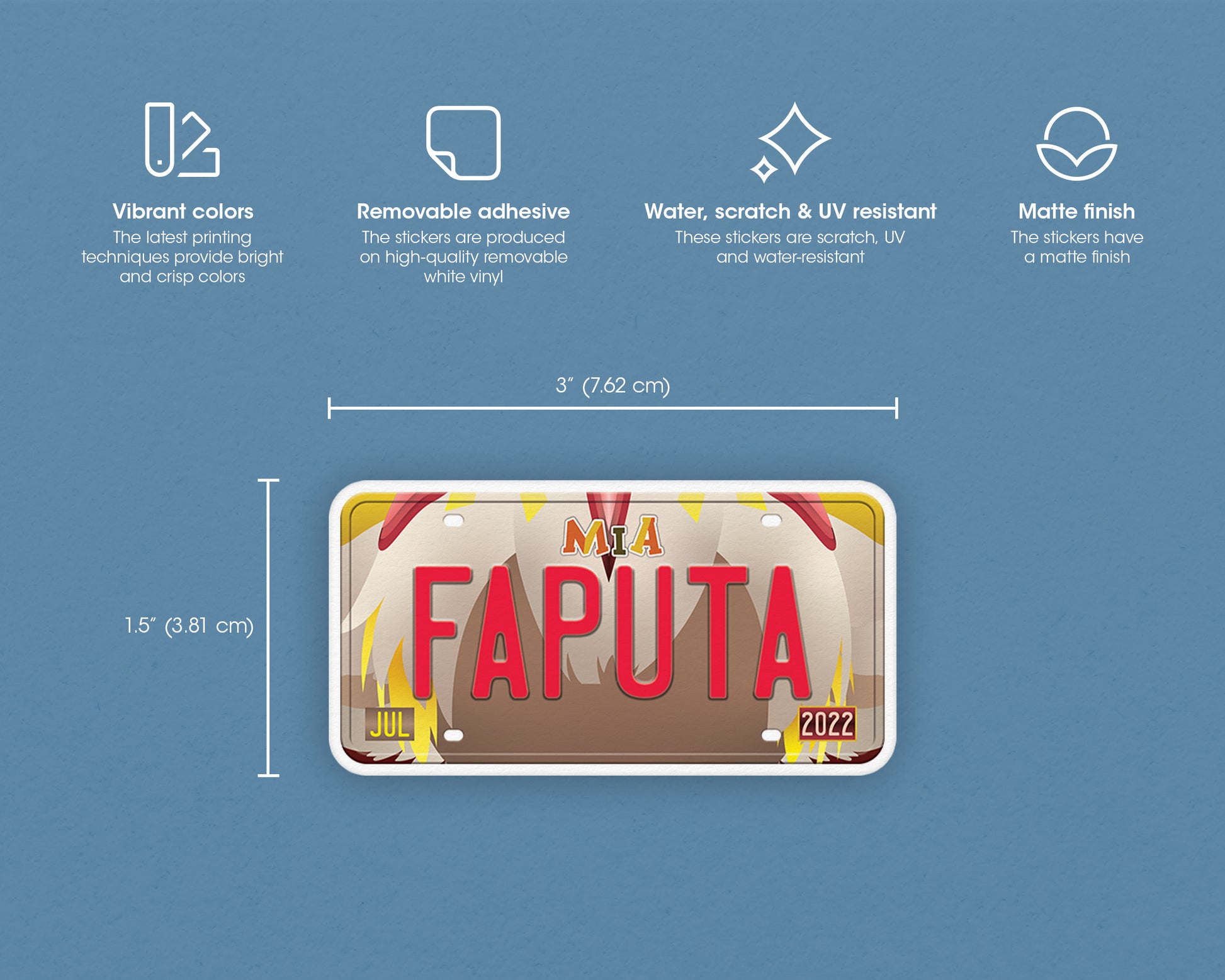They are kiss-cut and fully removable matte scuff-resistant vinyl stickers with a 1/8 inch (3.2mm) white border around all designs. They are vegan-friendly, super durable, and water-resistant!