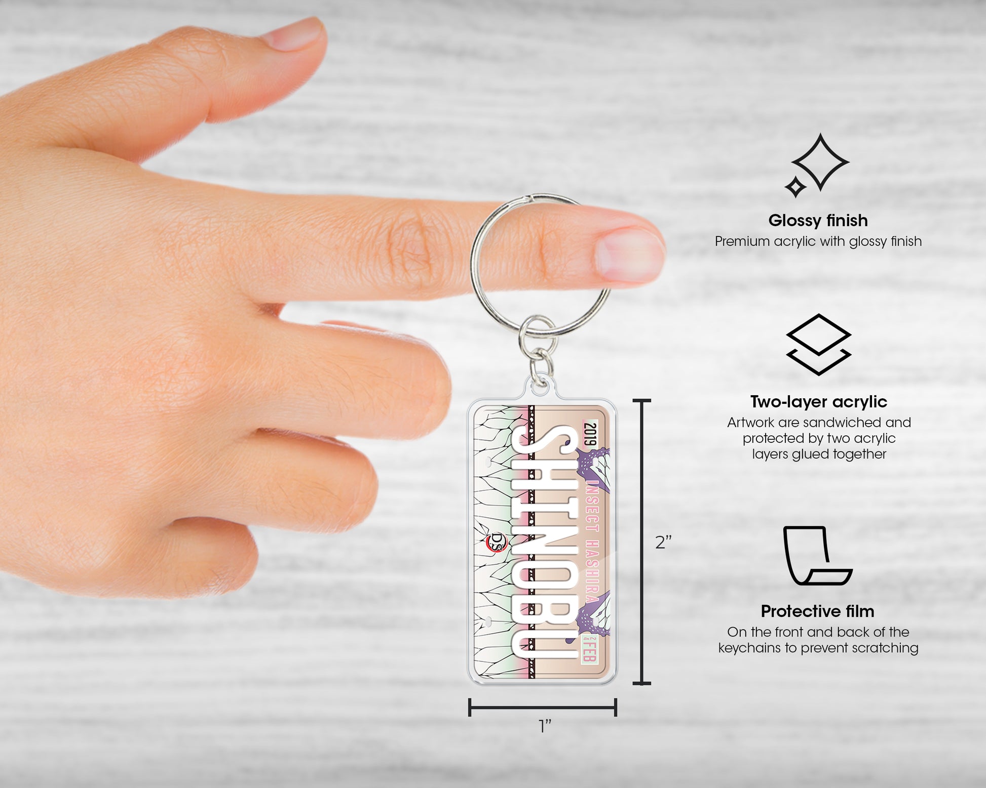 This little license plate acrylic keychain was designed and inspired by your favorite anime character. The minimal feel and vivid color make them stand out yet able to fit in with any style of decor. Your belongings should reflect who you are and what you care about. Adding a pop of color to your keychain is an easy way to inject some personality and put a smile on your face. They also make a lovely gift for friends and family.