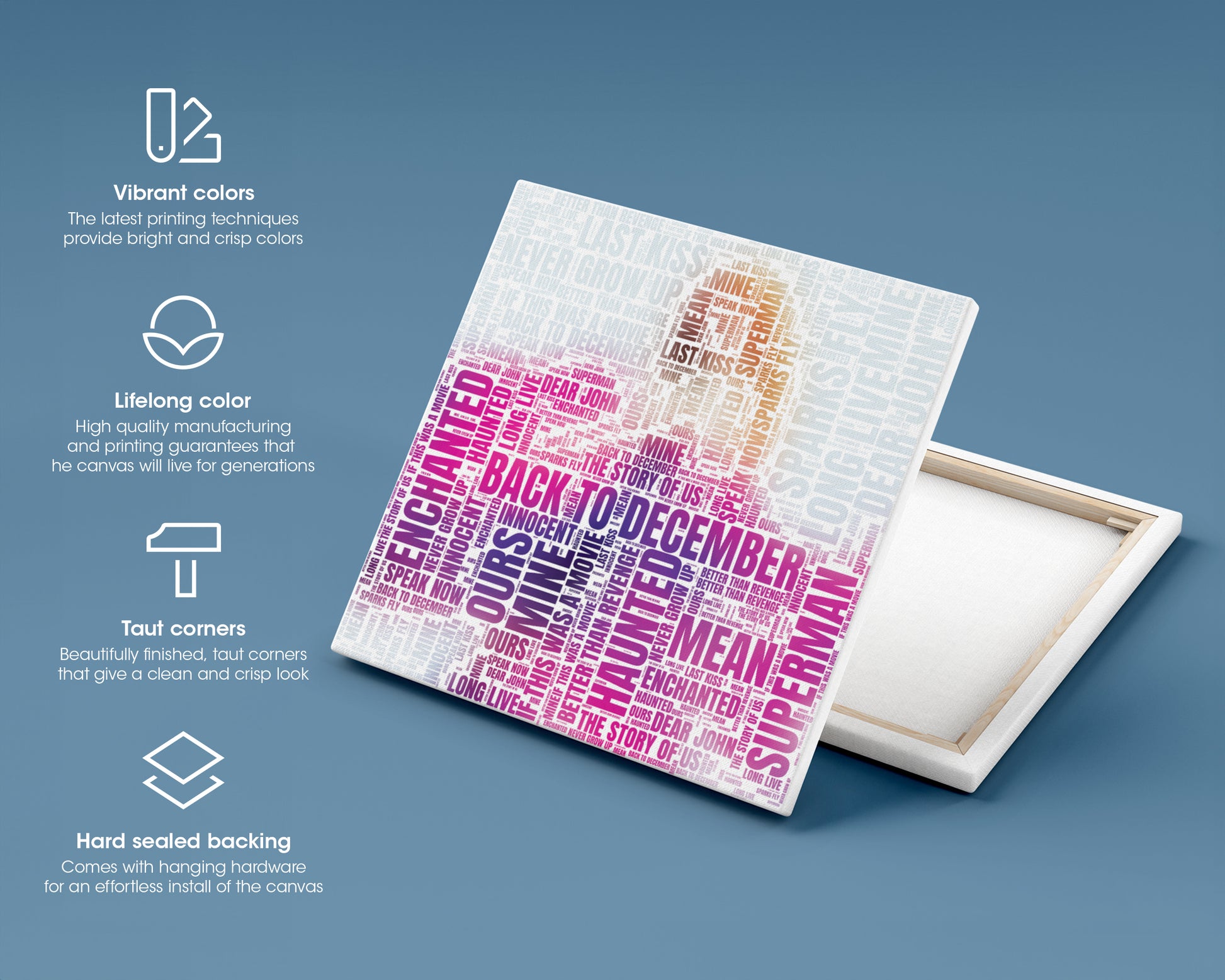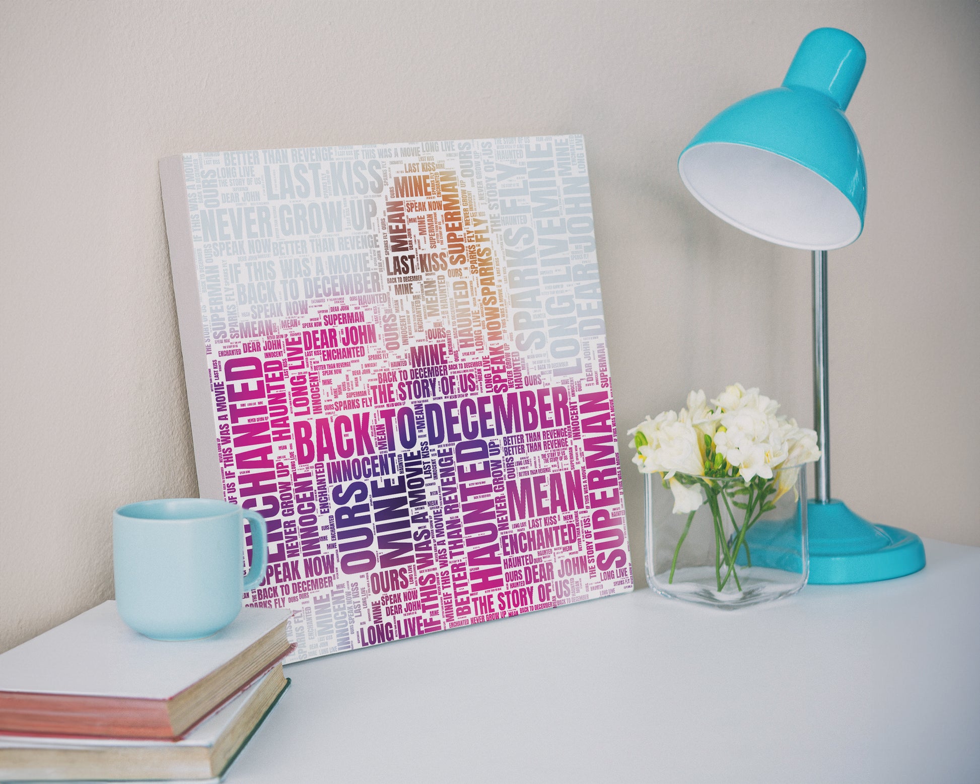 Transform your wall into a stunning work of art. This gorgeous word art design was inspired and created from your favorite album and its song titles. The minimal feel and vivid color make it stand out yet able to fit in with any style of decor. Your space should reflect who you are and what you care about. Adding a pop of color to your walls or desks is an easy way to inject some personality into any room and put a smile on your face. They also make a lovely gift for friends and family.
