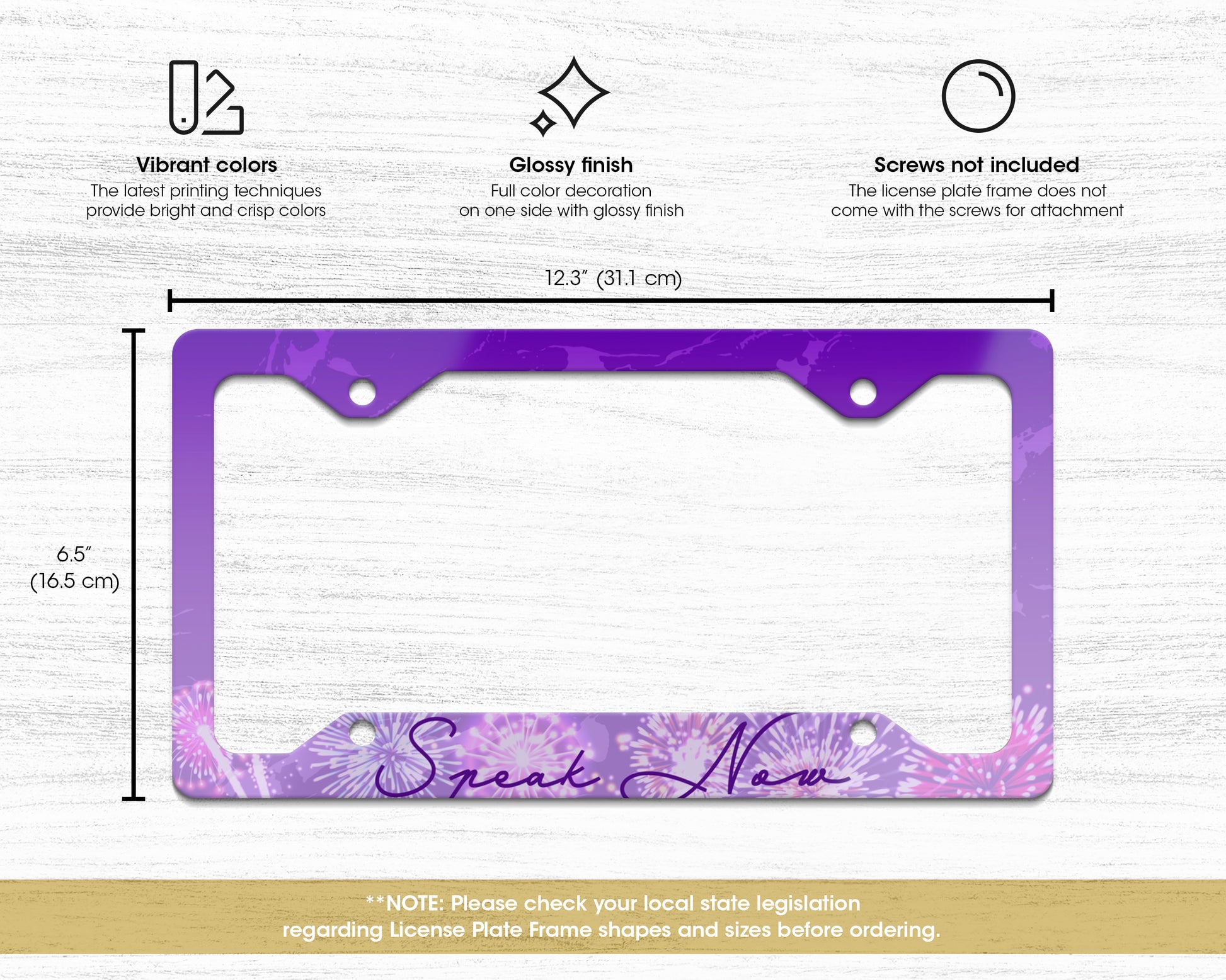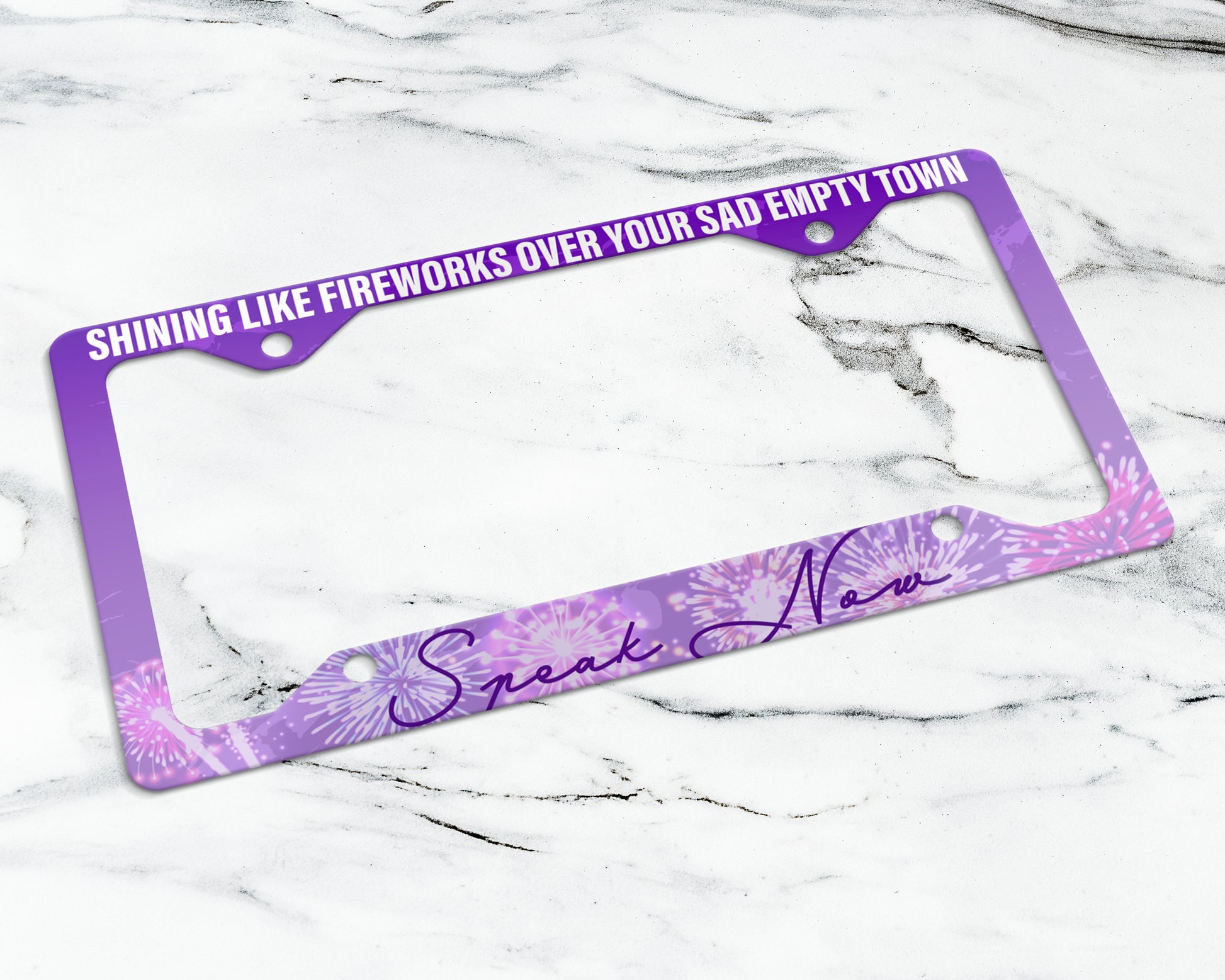 Customizable aluminum license plate frame. Music merch, car accessories, and wall decorations.