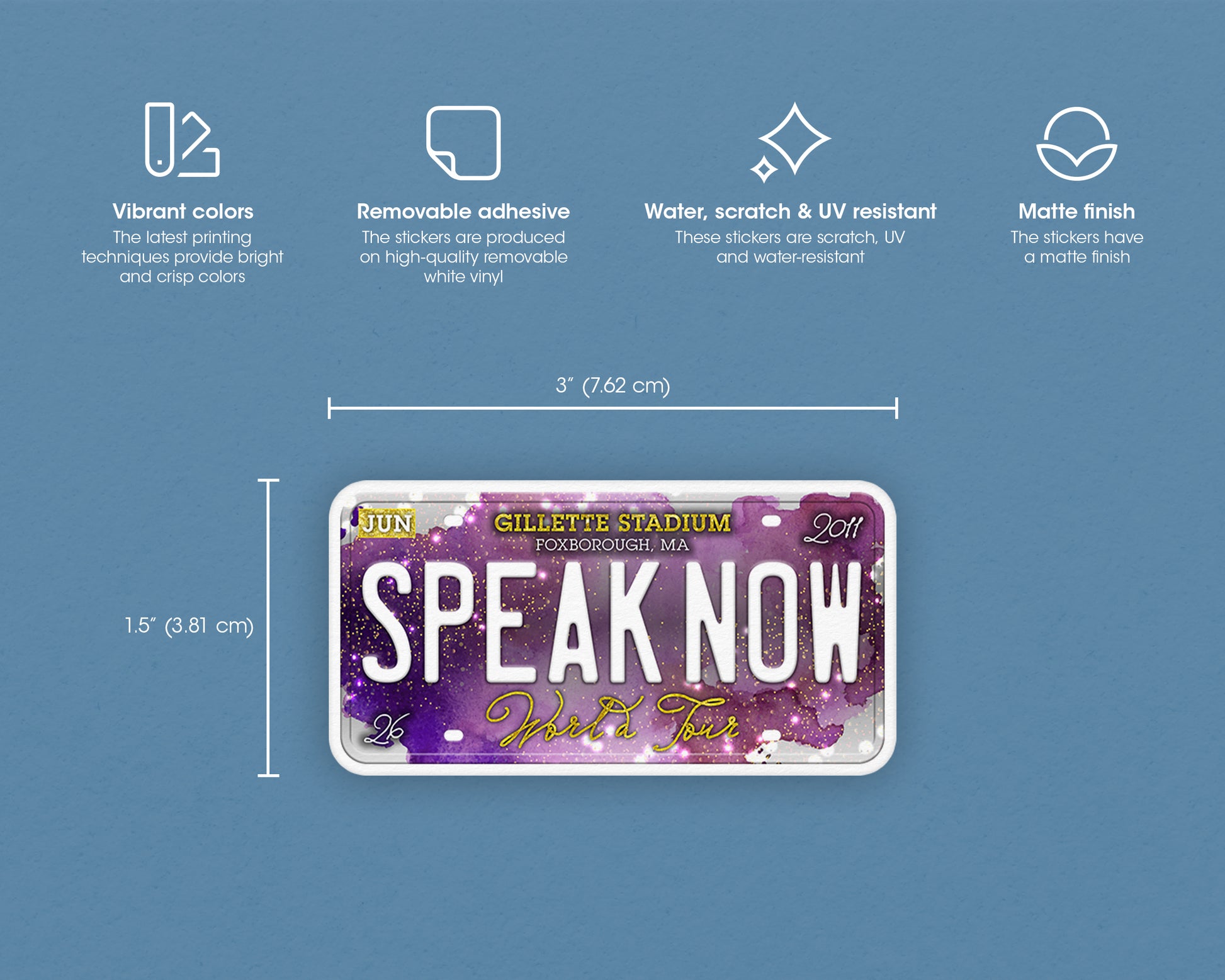Your favorite tour inspired this cute personalized matte sticker. They’re made from a removable vinyl that makes them perfect to use on phone cases, laptops, journals, guitars, refrigerators, walls, computers, or whatever needs a dose of originality. Stickers are water-resistant so they also can be used on products that get wet occasionally such as drink bottles, bumpers, cars, helmets, skateboards, and windows. Your belongings should reflect who you are and what you care about. Adding a pop of color to them is an easy way to inject some personality and put a smile on your face. It also makes a lovely gift for friends and family.