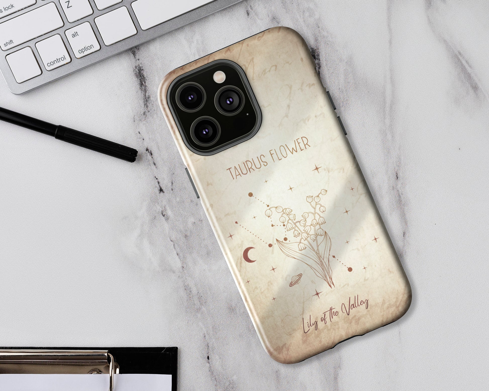 Taurus Zodiac sign birth month flower in hand-drawn line art on vintage paper iPhone case