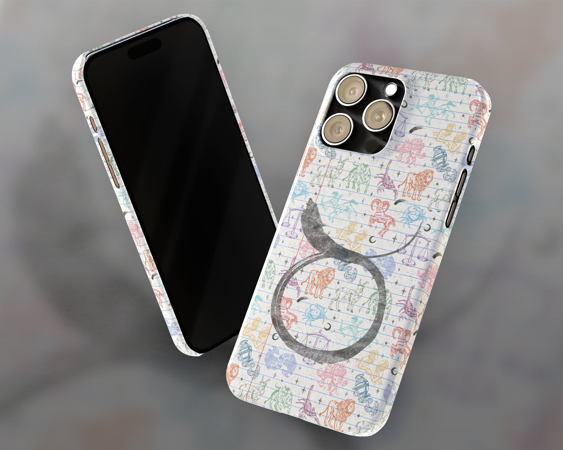 Taurus Zodiac sign colorful drawings on notebook iPhone case