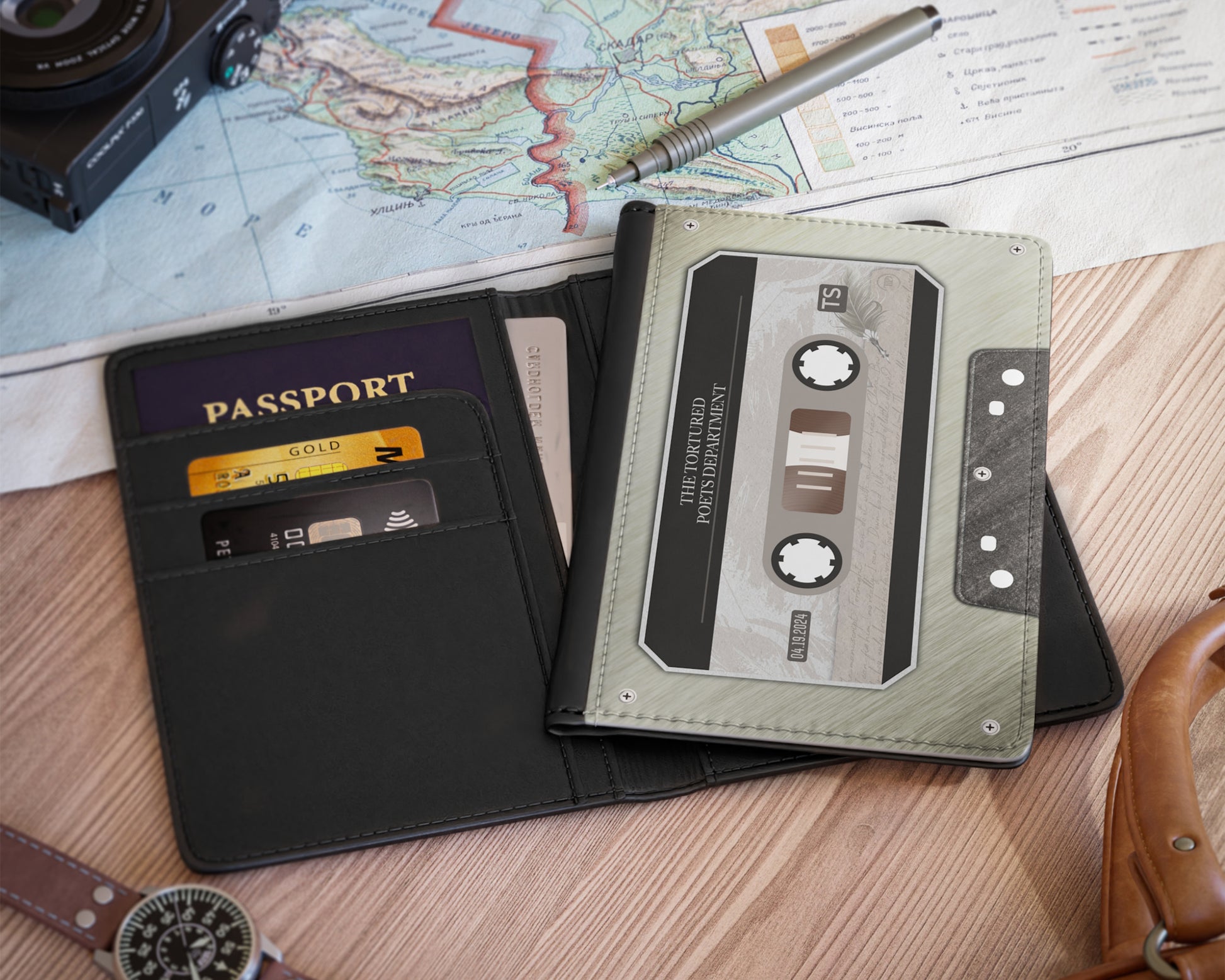Unique passport cover, travel wallet, card holder, music merch, gift, and accessories.