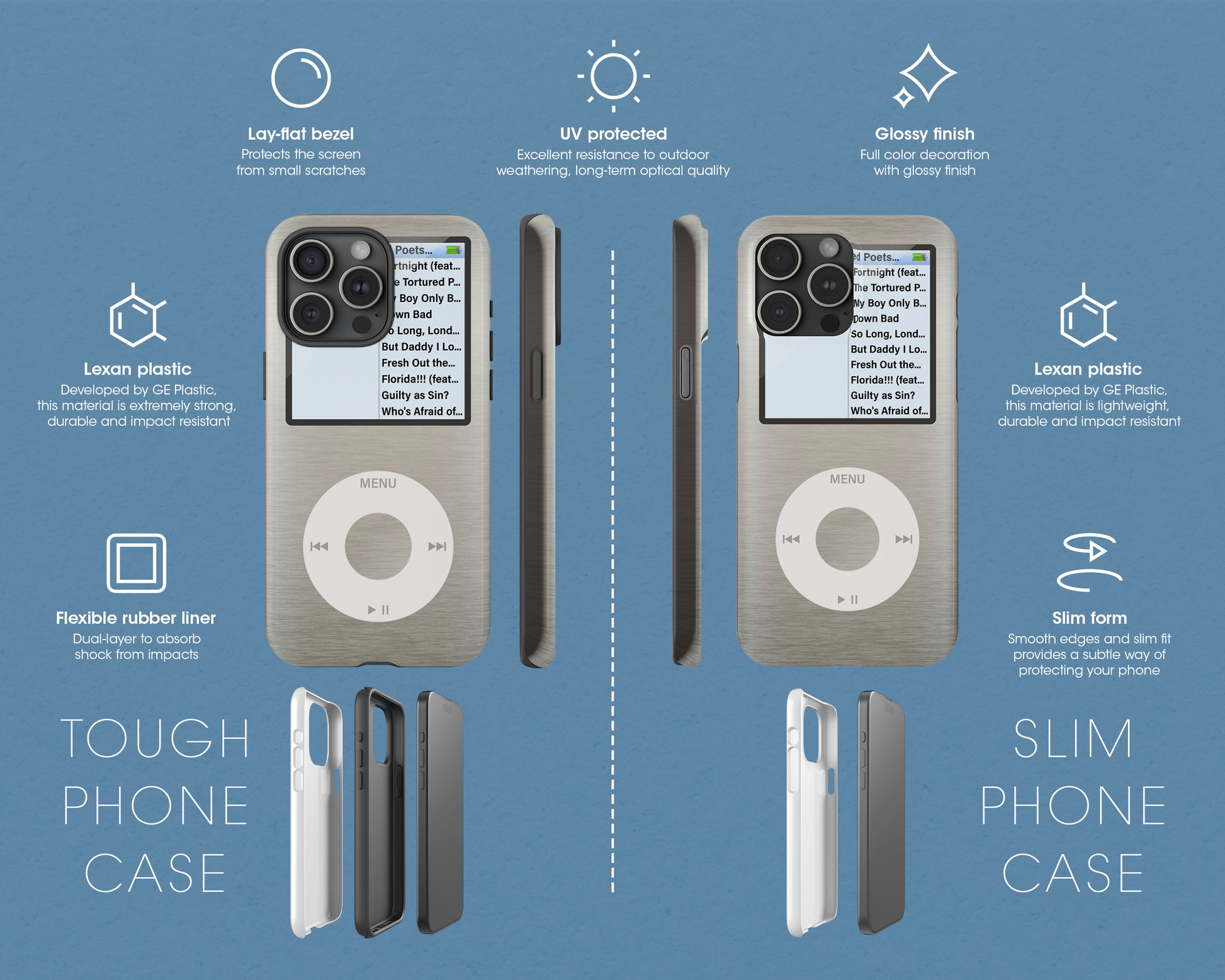 iPod Nano classic style phone case, music merch, gift, and accessories. Phone case for iPhone 16, iPhone 16 Plus, iPhone 16 Pro, iPhone 16 Pro Max, iPhone 15, iPhone 15 Plus, iPhone 15 Pro, iPhone 15 Pro Max, iPhone 14, iPhone 14 Plus, iPhone 14 Pro, iPhone 14 Pro Max, iPhone 13, iPhone 13 Mini, iPhone 13 Pro, iPhone 13 Pro Max, iPhone 12, iPhone 12 Mini, iPhone 12 Pro, iPhone 12 Pro Max, iPhone SE, iPhone 11, iPhone 11 Pro, iPhone 11 Pro Max, iPhone X, iPhone XR, iPhone XS, iPhone XS Max, iPhone 8, iPhone 8 Plus, iPhone 7, iPhone 7 Plus.