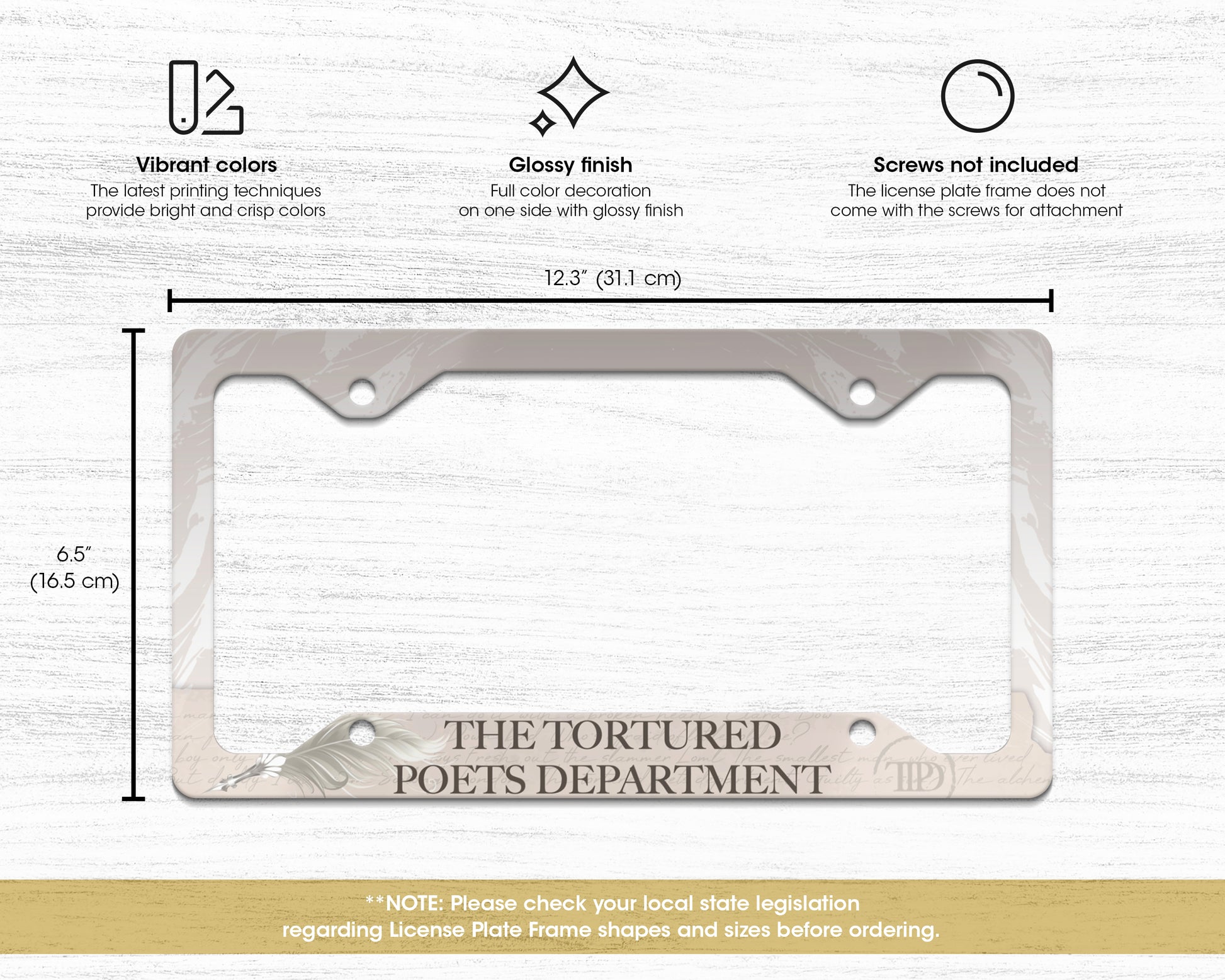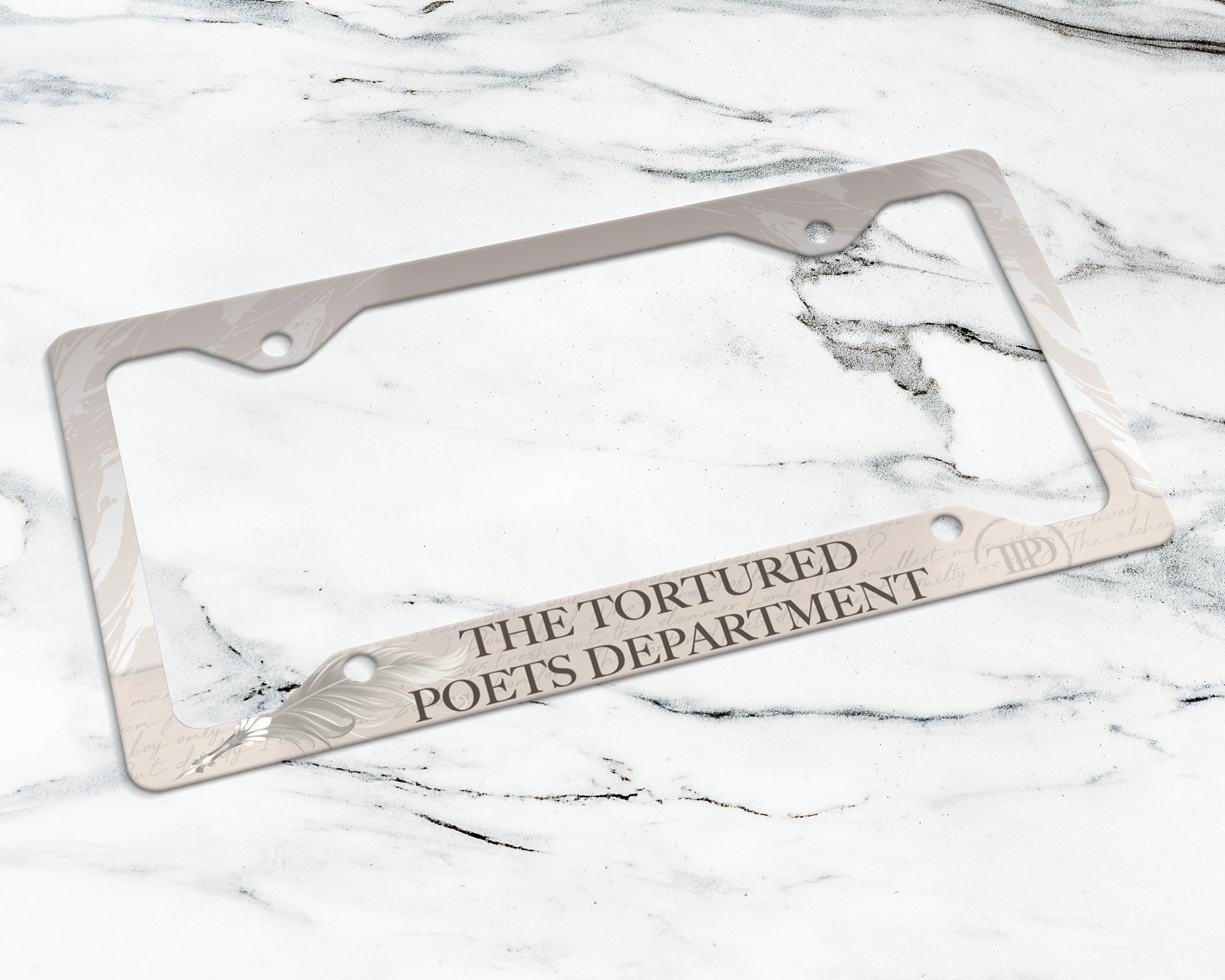 Customizable aluminum license plate frame. Music merch, car accessories, and wall decorations.