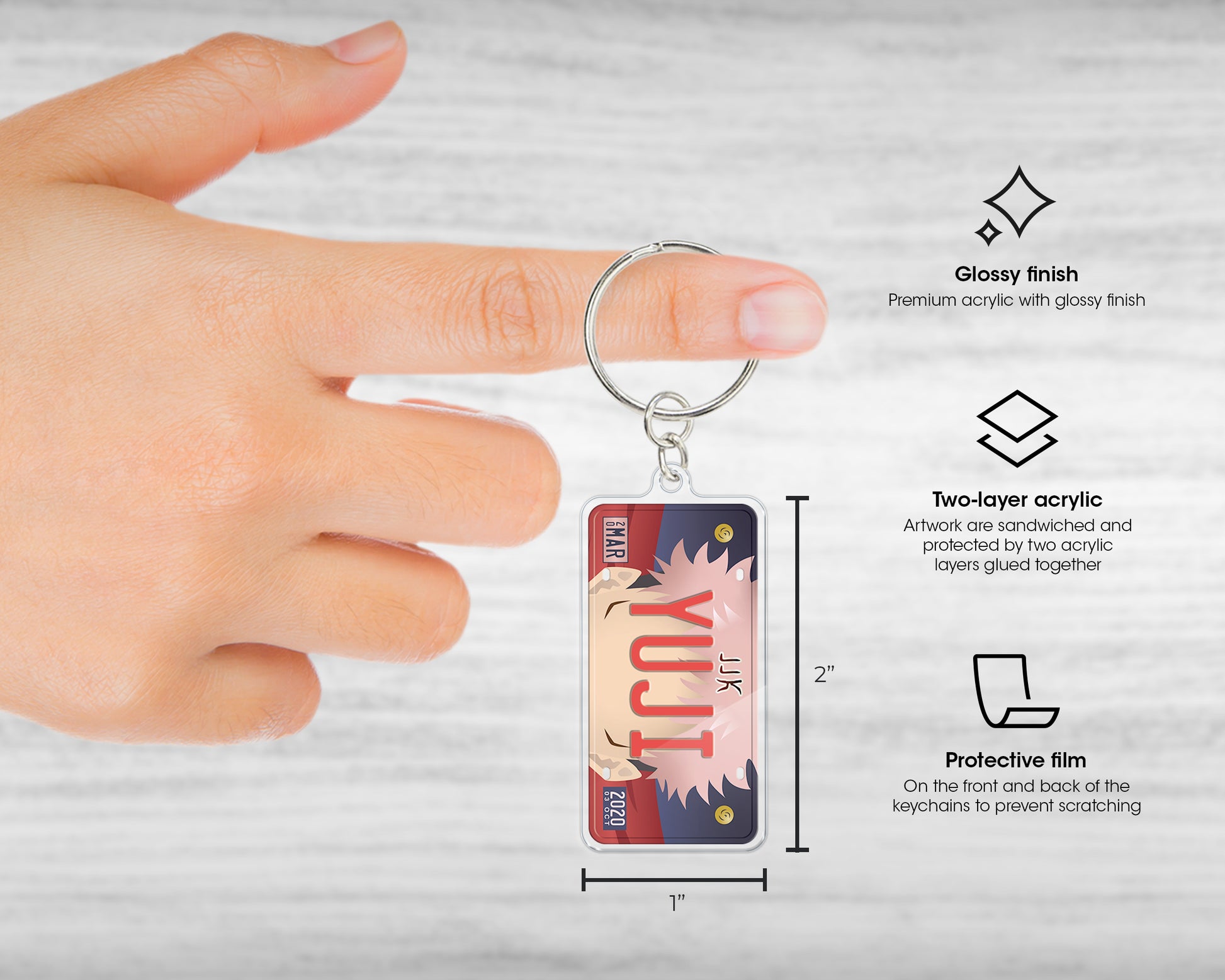 This little license plate acrylic keychain was designed and inspired by your favorite anime character. The minimal feel and vivid color make them stand out yet able to fit in with any style of decor. Your belongings should reflect who you are and what you care about. Adding a pop of color to your keychain is an easy way to inject some personality and put a smile on your face. They also make a lovely gift for friends and family.