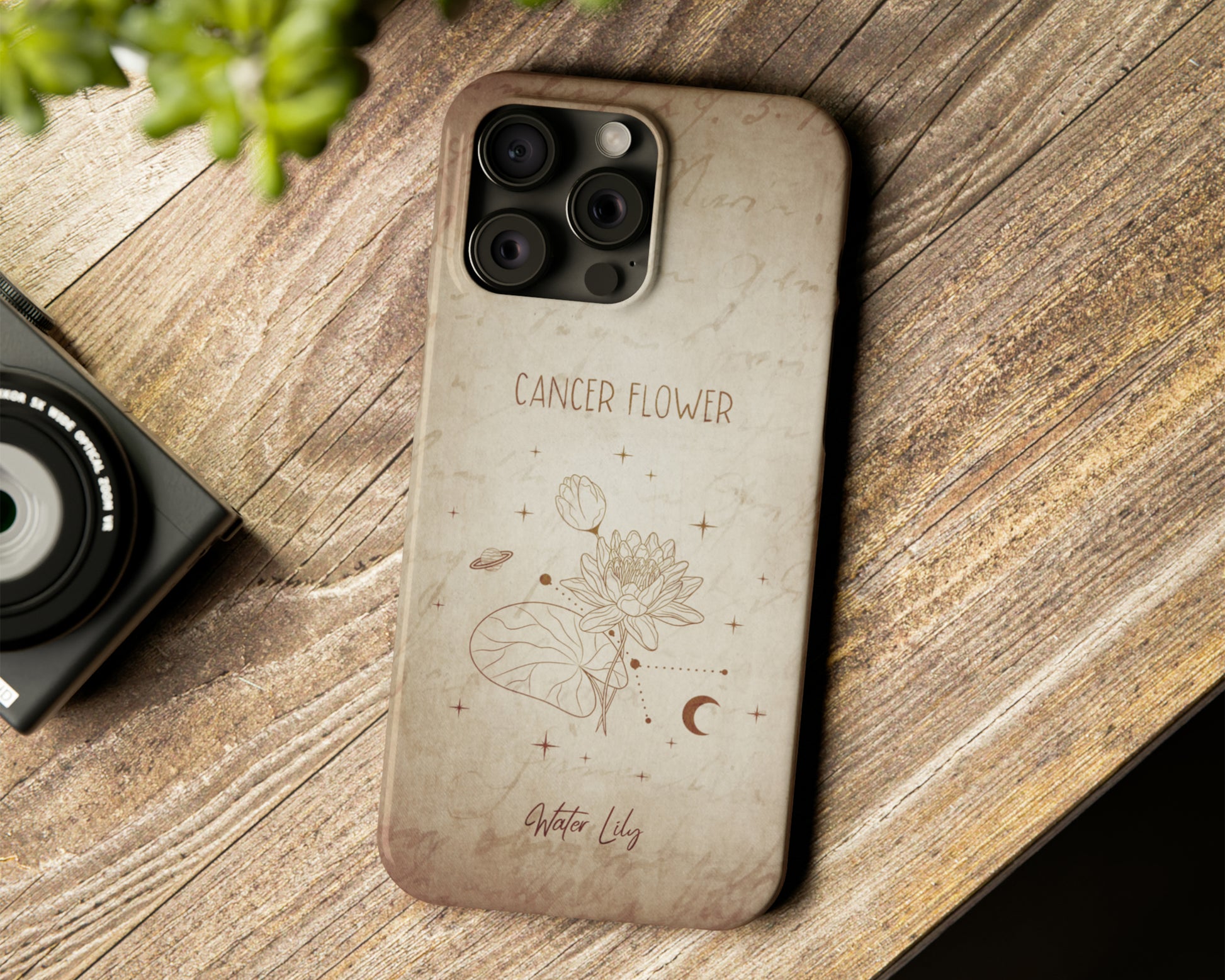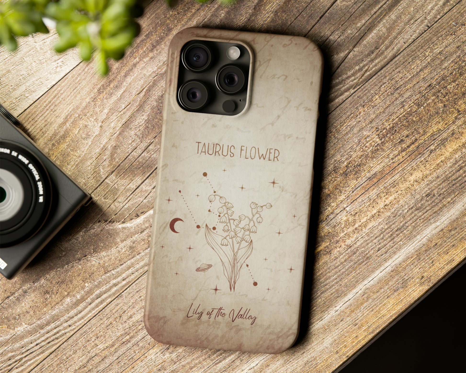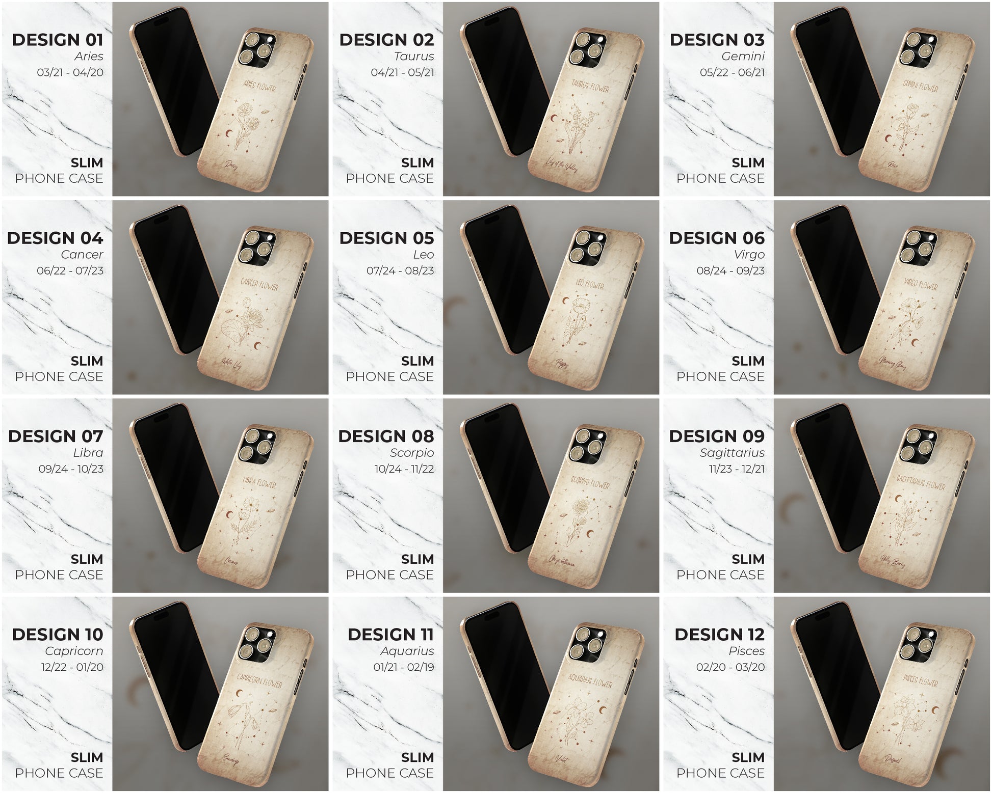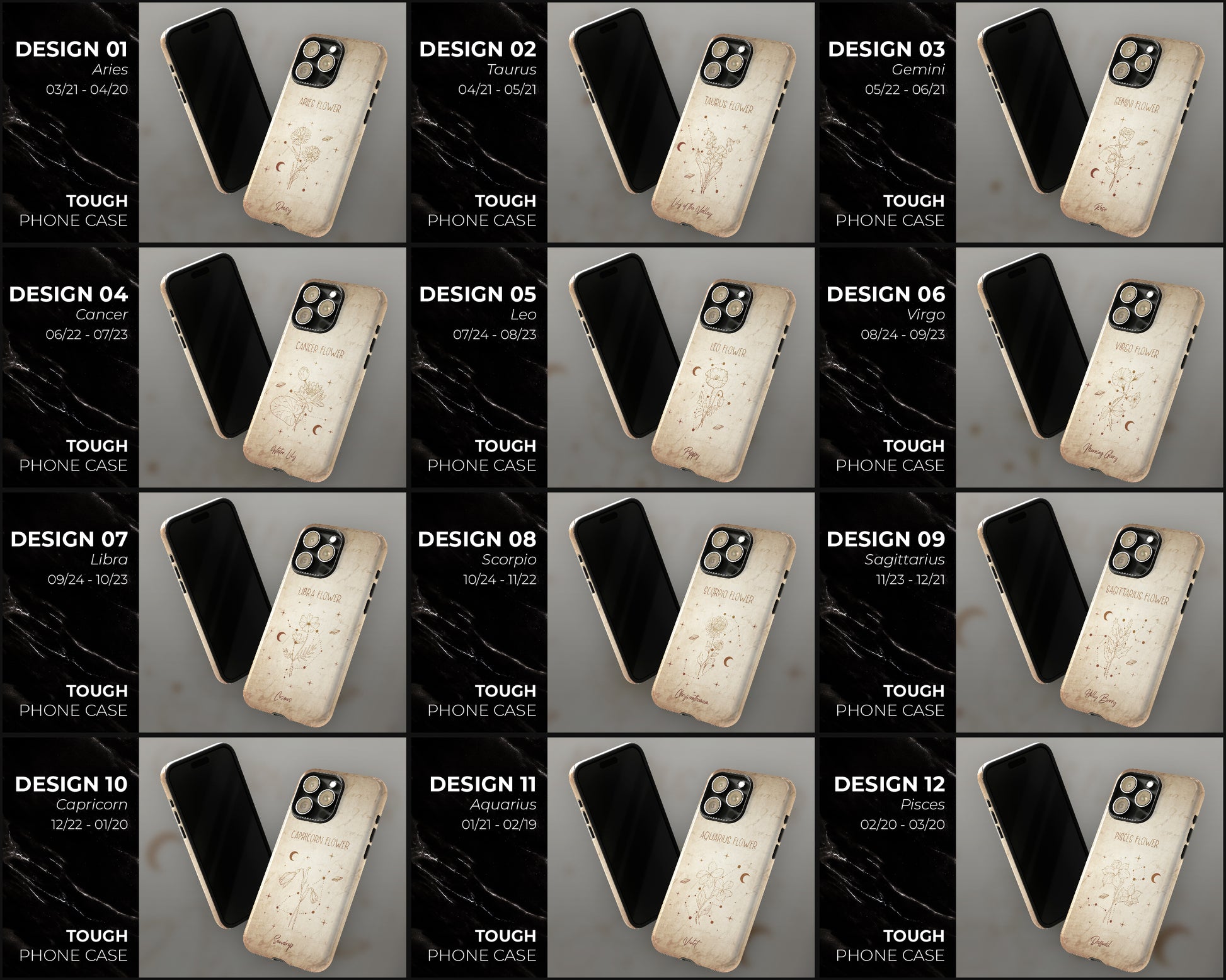Zodiac sign birth month flowers in hand-drawn line art on vintage paper iPhone case