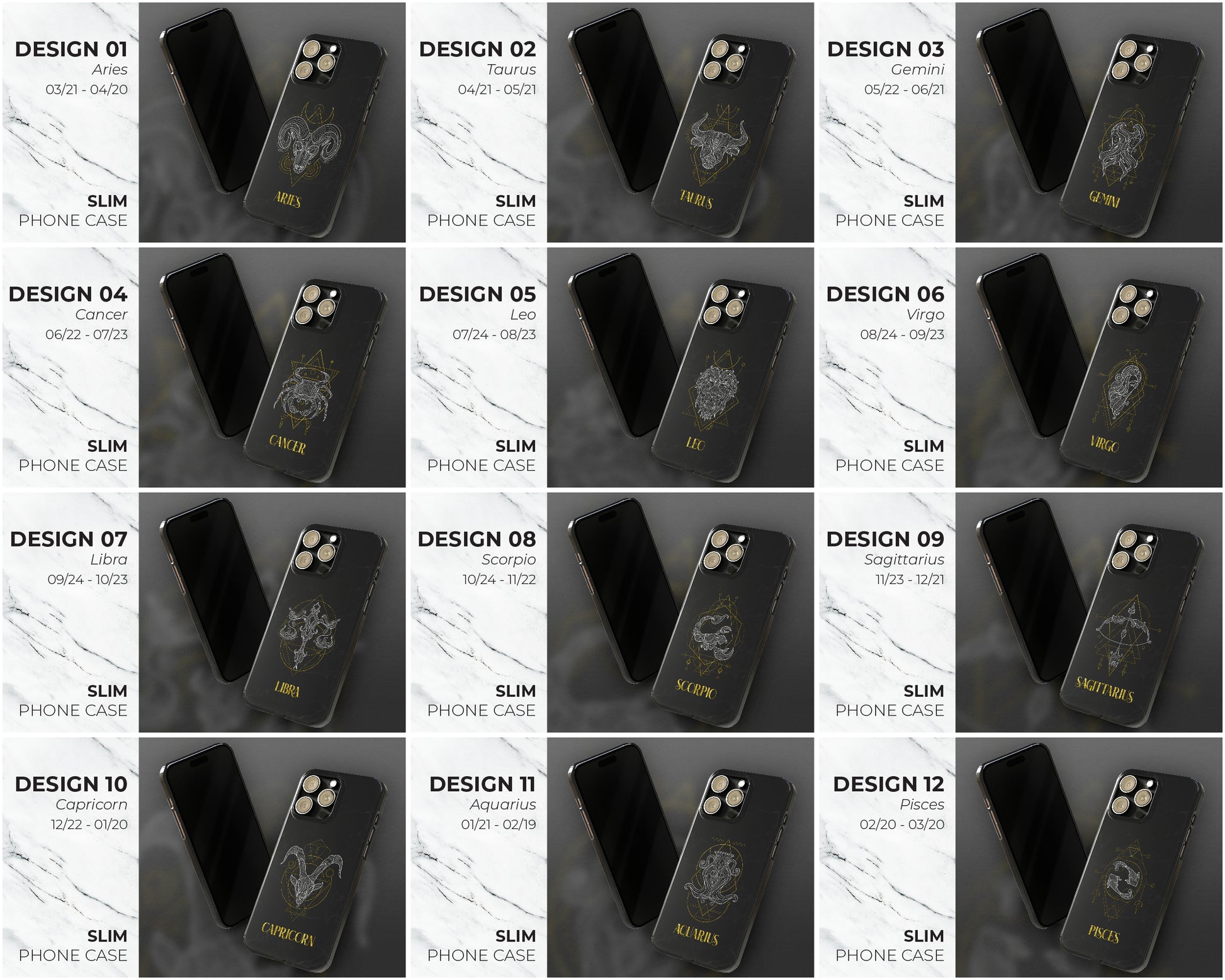 Discover our stunning collection featuring the twelve zodiac signs, each adorned with a captivating blend of golden and white line art symbols set against a backdrop of sleek black marble. These intricate designs elegantly depict the essence of each zodiac constellation, presenting a harmonious fusion of celestial imagery on a luxurious canvas of black marble. Explore this collection to add a touch of celestial sophistication and mystique to your surroundings.