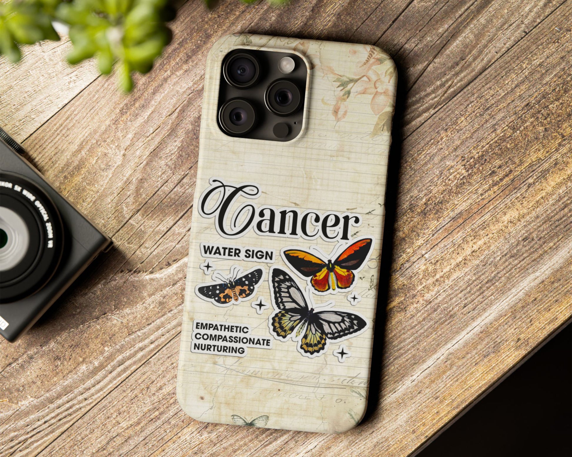 Zodiac sign vintage scrapbook with butterfly stickers iPhone case